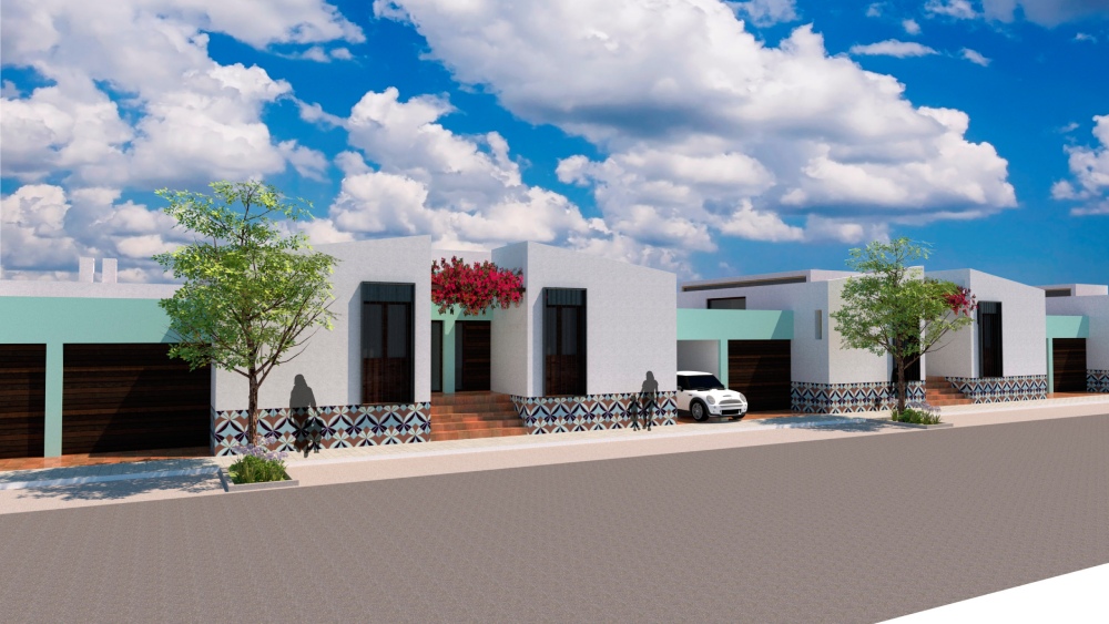 El diseño de las viviendas fusiona elementos contemporáneos y tradicionales con influencias andaluzas, combinando líneas sencillas y tonos simples que resaltan la sencillez arquitectónica del conjunto, diseño que queda complementado por detalles de azulejos con un atractivo patrón visual.